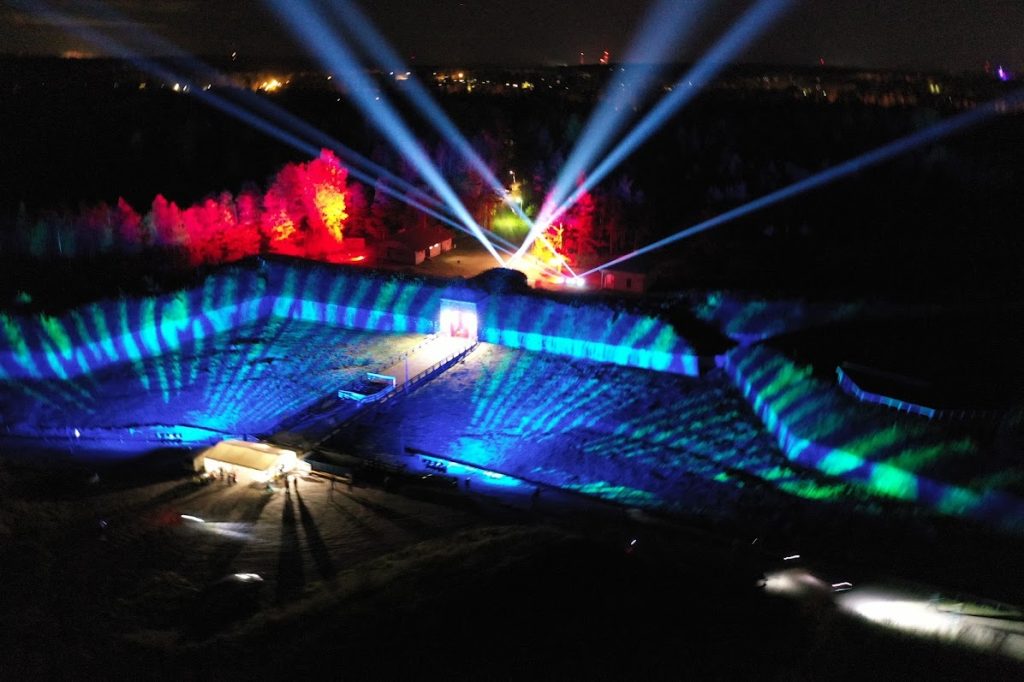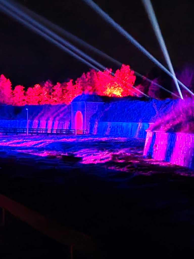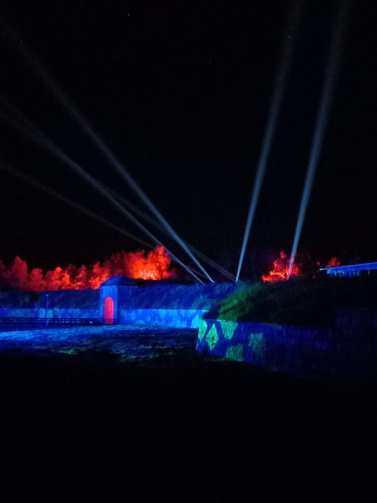 Kuvia ”Aaltoja! Valoa ja ääntä Kotkassa” -festivaalin valotaideteoksesta 18. – 21.10.2023. Taideteoksen toteutti AK Sound and Music Service, Jari Vähämäki työryhmineen Kyminlinnan Linnoitusalueen Ystävät ry:n tilauksesta.